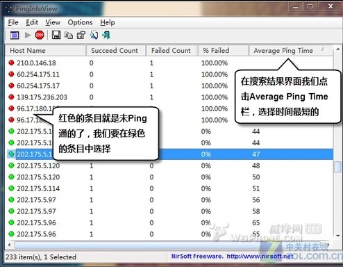 為了方便大家查看,我關閉了一些列,只留下相對重要的來給大家展示,在這些測試結果中我們需要選擇平均響應時間最短的IP地址,這樣我們下載的速度也就越快。