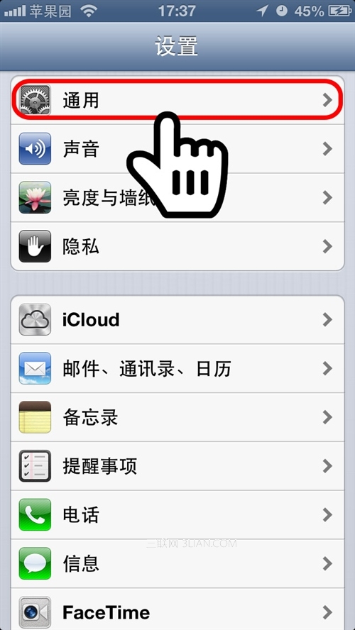 第3步:在“通用”設置中,找到“訪問限制”。默認狀態下,該項目為關閉狀態,接下來我們要把該選項打開才可以使用相應功能。如果您已經打開了“訪問限制”,輸入密碼後請跳到第7步;