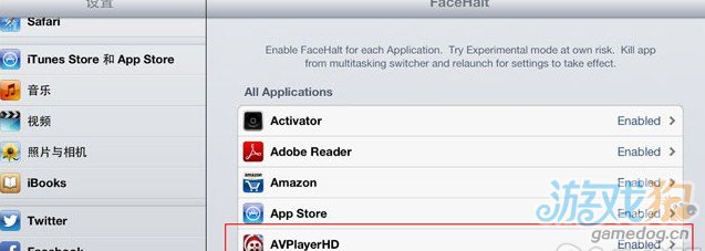 注:如果在某個應用下,該插件功能無法正常工作,請進入設置->FaceHalt->無法工作App中將Enabled改為Experimental