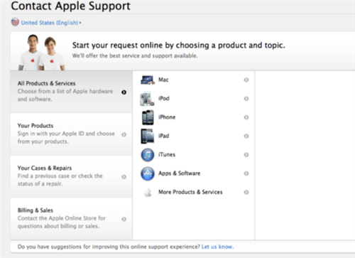 撥打1-800-APL-CARE (1-800-275-2273)後,你將進入自動系統,如果問題無法解決,系統再轉接至人工服務。如果你不喜歡使用自動系統,這種方式可能不適合你。