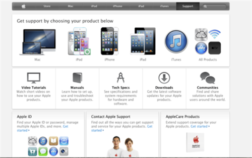 1. 點擊“Contact Apple Support”下的“Get Started”鏈接。