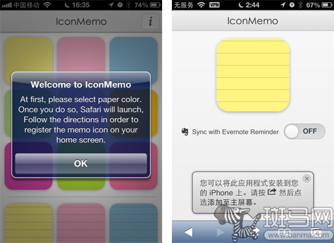 按照應用的提示,點擊下方正中的按鈕,然後點擊“添加至主屏幕”。之後輸入便簽的名稱(按自己需要隨意命名即可,此處並非便簽的具體內容),然後點擊右上角的添加按鈕,一個如同App圖標一樣的便簽就出現在屏幕上了。你可以像調整App圖標位置一樣,把它移動到任意位置。