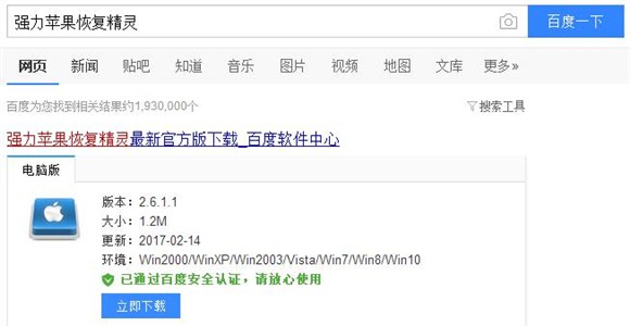1、蘋果手機使用的人群是非常多的,如果蘋果手機遇到誤刪照片的情況,那麼我們可以使用強力蘋果恢復精靈http://www.cjxz.com/softs/79751.htm進行恢復。因此我們可以通過搜索強力蘋果恢復精靈,將軟件下載到電腦上。