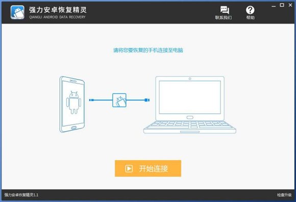 3、安卓手機獲取ROOT權限後,我們運行強力安卓恢復精靈,並點擊“開始連接”選項。
