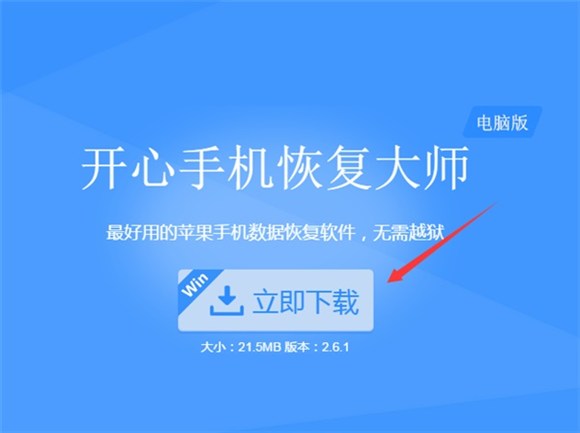 第一步:在恢復蘋果手機刪除的短信之前,我們下載開心手機恢復大師(下載地址:http://www.jb51.net/softs/446212.html)到自己的常用電腦上,下載後直接安裝運行;