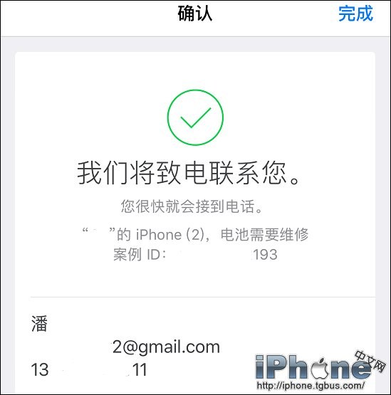 當運行診斷程序檢測完成之後,會跳出一個確認頁面,顯示蘋果即將致電,還會顯示設備是否需要維修以及案例 ID ,下面就是用戶的姓名、Apple ID和手機號。