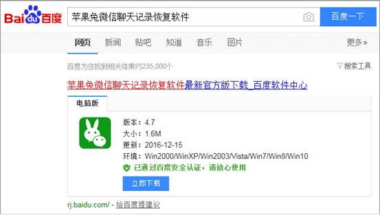6,在百度上搜索下載並打開“蘋果兔微信聊天記錄恢復軟件”。