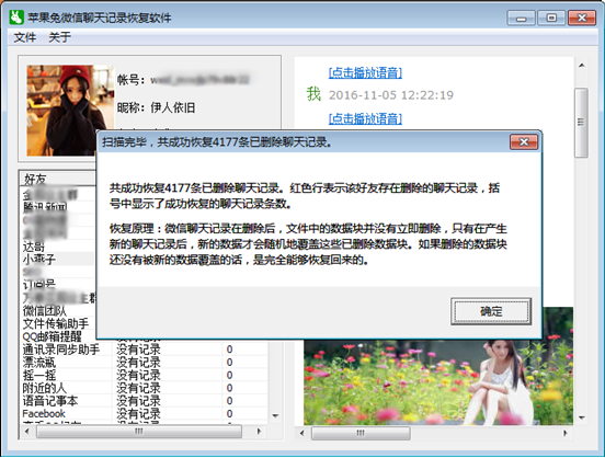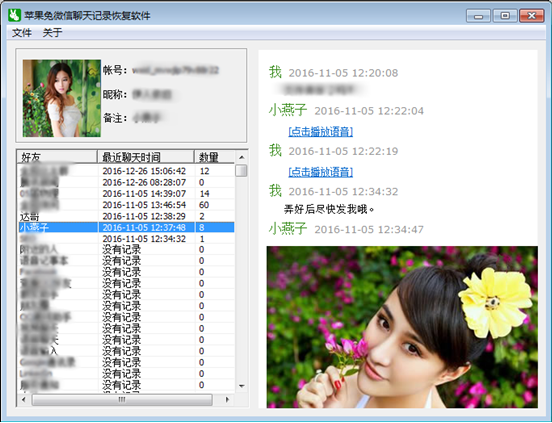 8,這樣,怎麼查看安卓手機上的微信聊天記錄就實現了,從下圖中可以看出來,不但可以查看文字消息,還可以播放語音消息,及查看收發的圖片。