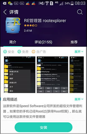 3,Root結束後,請在手機上安裝並打開“RE管理器rootexplorer”,我們可以先在手機上安裝“360手機助手”,然後到360手機助手中搜索下載RE管理器。