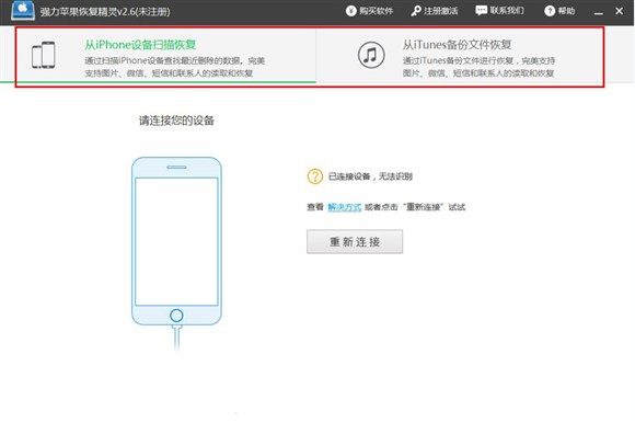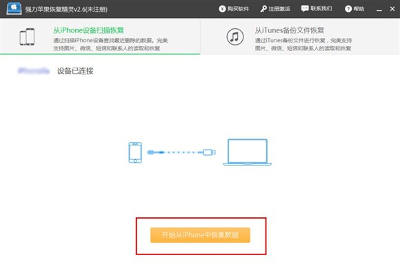 1、我們先要下載安裝強力蘋果恢復精靈,然後將手機連接到電腦上,確保手機和軟件已經成功連接了。