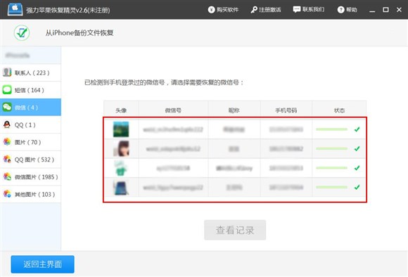 接下來小編以強力蘋果恢復精靈恢復微信聊天記錄為例,為大家講解一下軟件的使用方法。
