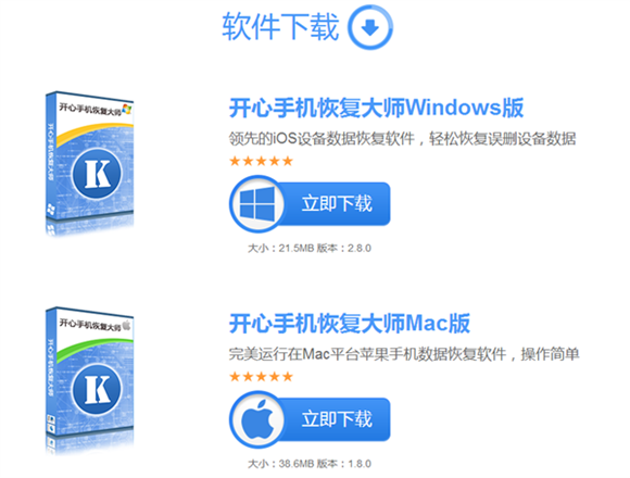 第一步:將技術型工具“開心手機恢復大師”(國內官網:www.kxbox.com)下載安裝到我們的電腦上。借助開心手機恢復大師此專業的蘋果手機數據恢復軟件,只需要五步就可以簡單的幫助我們找回微信刪除的聊天記錄。下載開心手機恢復大師的時候,注意根據自己的電腦系統區分版本下載。