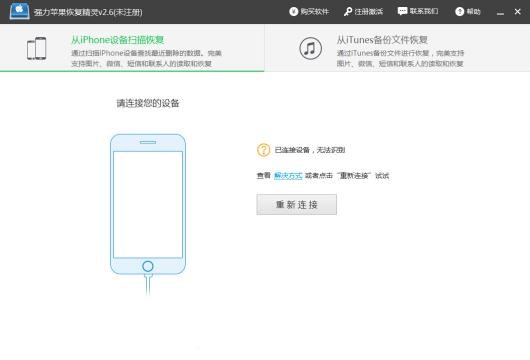 強力蘋果恢復精靈使用上非常簡單,用戶只需要選擇恢復模式後,將手機連接到電腦上,就可以進行數據掃描了。當數據成功掃描後,根據提示就可以進一步恢復數據了。