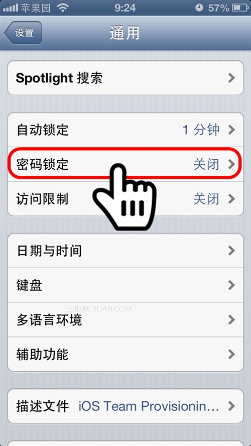 在iPhone中有專門的開機密碼設置選項,默認狀態為關閉,即不加密,下面蘋果園的小編一步步教您完成密碼設置: