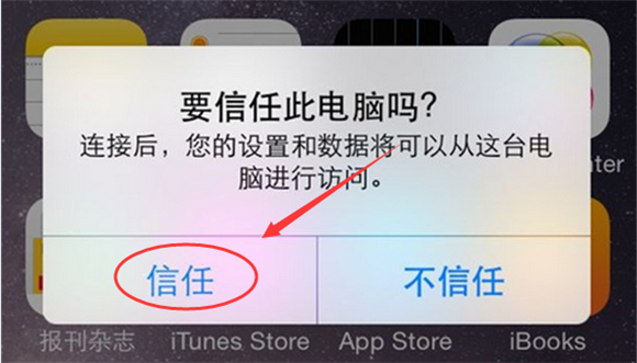 第一步:在導出蘋果手機QQ聊天記錄之前,我們要把開心手機恢復大師(下載地址:http://dl.pconline.com.cn/download/365970.html)下載到電腦本地;同時將需要導出QQ聊天記錄的iPhone手機連接到電腦上,如果是第一次連接,則點擊手機提示框中的“信任”按鈕即可;