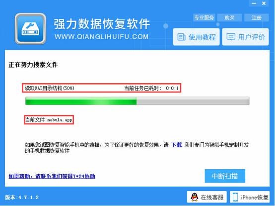 3.接著強力數據恢復軟件進入文件掃描狀態,請耐心等待軟件掃描結束。