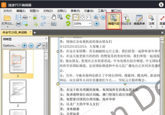4、接下裡我們就可以對PDF文件的文件進行編輯了,我們點擊軟件上方的“編輯內容”選項,然後找到自己想要進行編輯的內容點擊即可進行編輯。