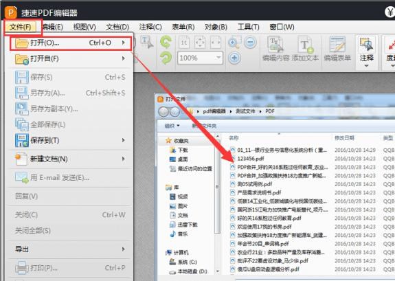 3、點擊左上角的“打開”選項,將我們需要編輯的PDF文件,添加進捷速PDF編輯器當中。