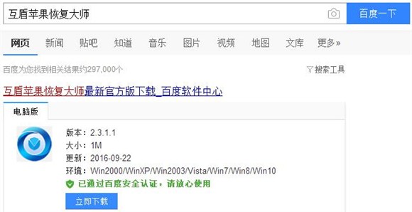 1、首先我們通過搜索互盾蘋果恢復大師(http://www.huifudashi.com/),將這款蘋果設備專用的數據恢復軟件下載到電腦上。