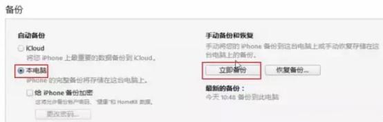 2、接下來在本地電腦和iCloud中選擇本地電腦,然後再點擊“立即備份”就行,需要注意的是,這裡備份的是手機上的所有資料。