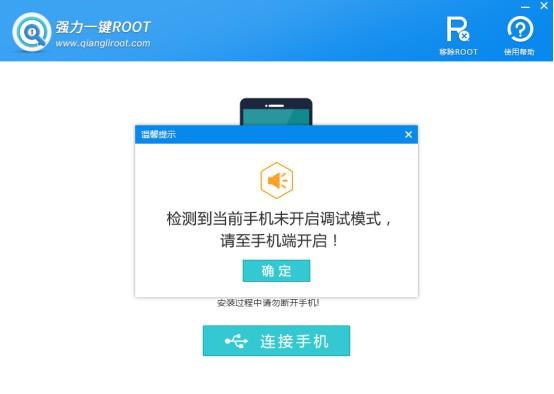 4、安裝完成以後我們需要把手機開啟調試模式,如果你沒有開啟此時軟件會自動提醒用戶進行開啟,這點很貼心。