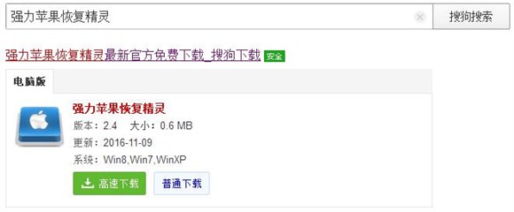 2、將強力蘋果恢復精靈(http://www.cjxz.com/softs/79754.html)下載到電腦裡,強力蘋果恢復精靈可以恢復蘋果設備裡刪除的照片、微信聊天記錄、短信等數據刪除問題。是一款非常好用的數據恢復軟件。