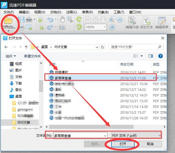 2、編輯器界面打開後,我們接下來還是要將需要調整頁面大小的PDF文件添加到編輯器程序,點擊“打開文件”,然後選擇PDF文件後,就可以點擊“打開”完成了。