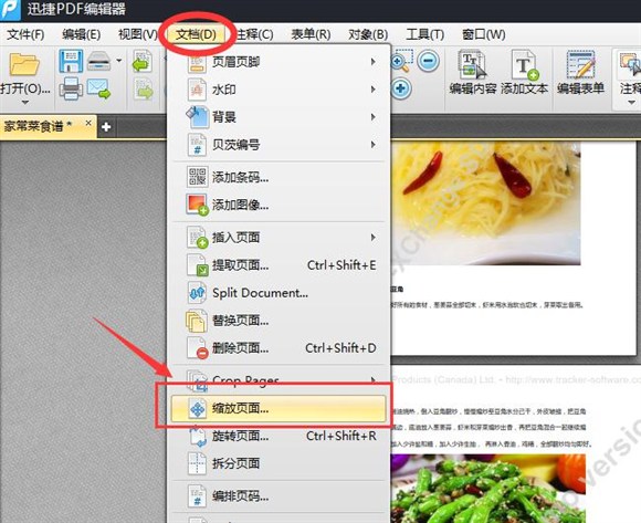 4、接下來,我們選中需要調整的頁面,點擊“文檔”,在文檔欄目裡找到“縮放頁面”的設置,點擊“縮放設置”。