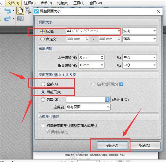6、我們也可以點擊標准頁面設置,然後運用到全部頁面,最後點擊“確定”。這樣我們整個PDF文件的頁面都是一樣大小了,PDF頁面大小不一致的問題就解決了。