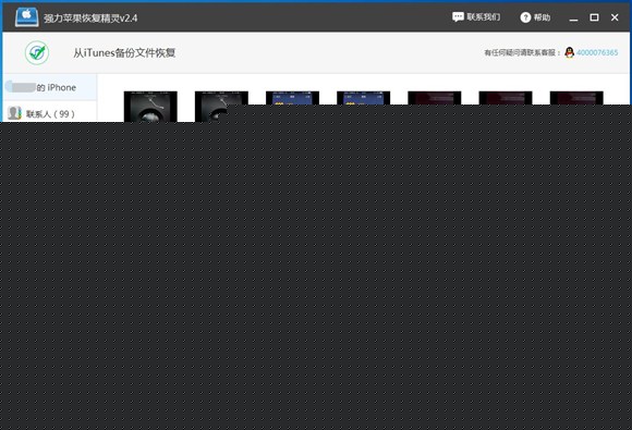 3.恢復:打開強力蘋果恢復精靈,選擇“從iTunes備份文件恢復”功能,軟件自動檢測備份設備,請點擊“開始掃描”按鈕。