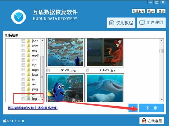 第四步:經過互盾數據恢復軟件的掃描,我們可以在軟件界面中看見很多不同類型的數據文件,請點擊查看文件,找到並勾選要恢復的文件,然後點擊“下一步”。