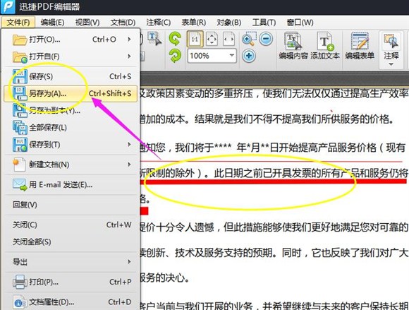 2、雙擊打開迅捷PDF編輯器後,將一片PDF文件打開,在編輯器界面進行調整,這裡我打開的是一個通知函。