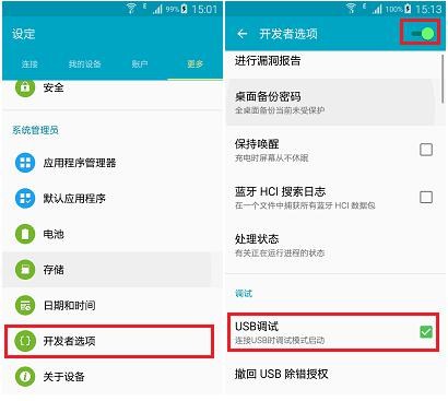 1.這裡需要將手機連接電腦,請提前打開USB調試,安卓手機系統不同,打開方式也有所不同,這裡個大家一個傳統的方法,大家可以根據此方法找到相應的功能打開USB調試。手機USB調試一般的打開步驟:依次點擊設置——應用程序/關於手機——開發——勾選USB調試即可。