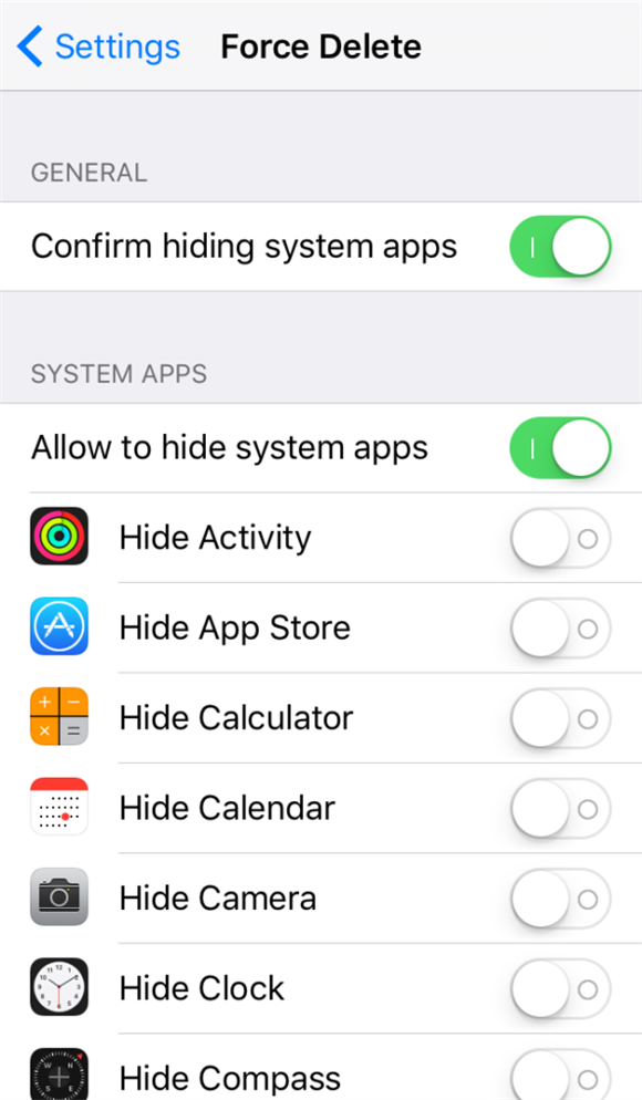 Force Delete 是最近在 Cydia 上架的一款免費插件,它支持用戶通過 3D Touch 去刪除設備中的一些應用。開發者設計這款插件,主要是幫助用戶刪除他們從 App Store 中下載的應用,但是如果用戶想要嘗試的話,這款插件也可以幫助你將一些系統應用隱藏起來,不讓它們出現在 Home 屏幕上。