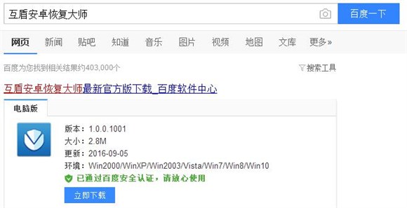 1.請下載安裝安卓微信聊天記錄恢復軟件,找到“互盾安卓恢復大師”下載資源,下載軟件,當軟件下載並按照步驟安裝結束後,請點擊“立即體驗”進入主界面。