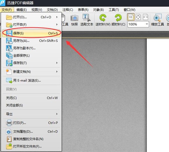 4、PDF文件編輯結束後,可以單擊“文件”下拉框中的“保存”按鈕進行保存,也可以快捷鍵進行保存,Ctrl+S一鍵保存就完成了。