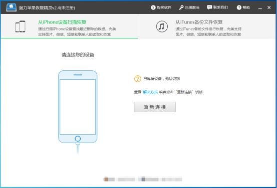 1.連接手機和電腦,使用iTunes軟件備份蘋果手機數據。安裝強力蘋果恢復精靈(蘋果恢復精靈)到電腦上,鼠標雙擊電腦桌面上的快捷方式,進入軟件主界面。
