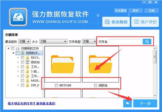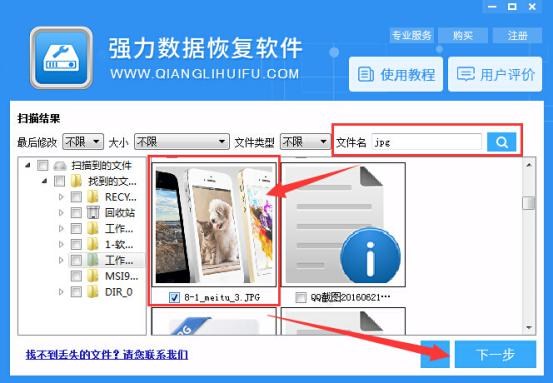 3.軟件掃描磁盤分區,請用戶稍等片刻,等待軟件掃描結束後,在掃描結果中找到要恢復的電腦文件。第一次使用強力數據恢復軟件的小伙伴可能會發現軟件掃描出了太多的文件,這是為了確保可以完整的恢復,如果找不到要恢復的文件,請用戶輸入文件名或是文件的後綴,點擊“搜索”找到指定文件,同時可以預覽查看文件。