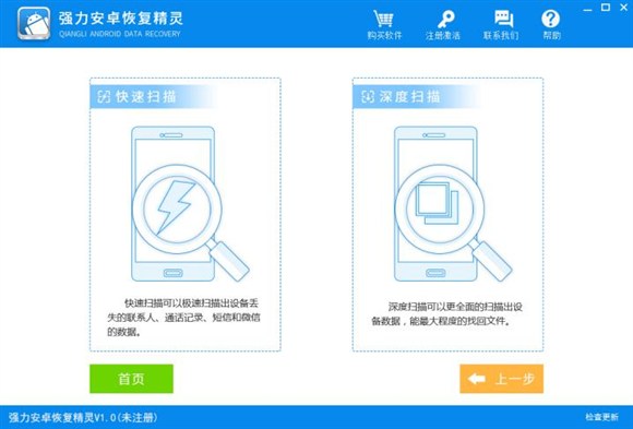 3、連接後,安卓手機上的照片刪了怎麼找回來最重要的一步就是對手機裡的照片數據進行深層掃描,也可以選擇快速掃描。