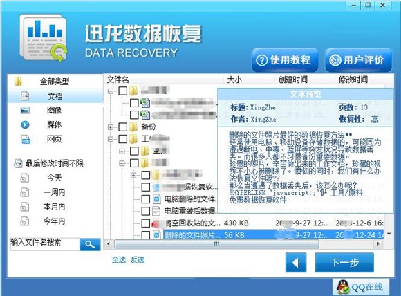 迅龍數據恢復軟件是一款萬能的數據恢復軟件,可恢復的范圍很廣,手機、硬盤、移動硬盤、內存卡等儲存設備中的數據都可以使用類似的方法恢復。