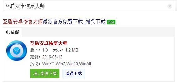 1、安卓手機數據恢復目前最合適的就是互盾安卓恢復大師了,受到大眾的一致好評,那麼,我們還是先在電腦上下載安裝,行動起來吧。