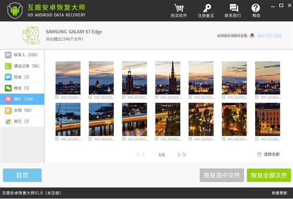 4、數據成功掃描後,在頁面顯示上,我們可以看到出來照片的數據顯示外,還有其他的手機數據,也就是說,如果我們需要恢復其他的數據也是使用同樣的方法,只要預覽到的數據都可以進行恢復。
