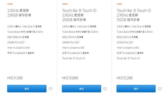 習慣性地,在發布完蘋果硬件之後我們都要盯一下香港蘋果官網的售價,一般來講都有驚喜,但是這回受人民幣匯率影響和蘋果定價策略的調整,香港港行Macbook Pro也沒有了明顯價格優勢。在全新Macbook Pro售價方面,香港官網與國內官網各規格型號售價幾乎一致。做對比如下: