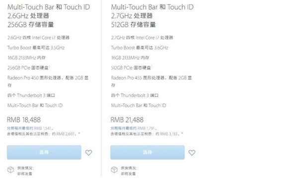 截止到發稿,只有香港官網上的Macbook Pro 13寸各版本可以立刻進行選擇並訂購,而配送時間則為11月2日。其余各版本兩大官網均未開啟訂購。