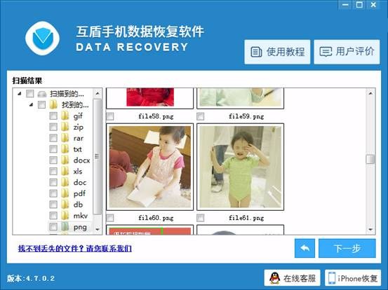 第四步,在掃描出的文件中選擇需要恢復的文件。使用互盾數據恢復軟件可以非常方便地對照片文件進行預覽來查看是否是自己所需要的照片。