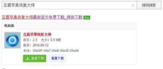 3、要恢復蘋果手機刪除的通訊錄我們還需要安裝一款互盾蘋果恢復大師軟件。一般情況下只有此軟件可以完美的恢復手機中刪除的各種數據。(安卓手機安裝互盾安卓恢復大師)