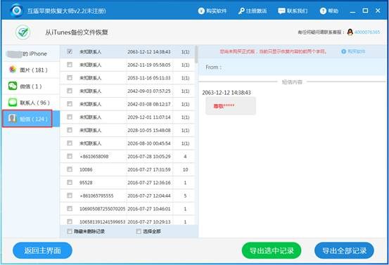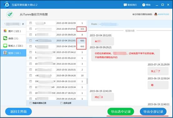 使用互盾蘋果恢復大師可以在界面當中清晰的查看恢復與任意聯系人的手機短信內容,有效幫助解決蘋果手機數據恢復問題。當你在恢復的時候遇到問題,可以進入互盾蘋果恢復大師官方網站咨詢技術人員,軟件在中國地區設置了7*24小時的全天候技術服務。