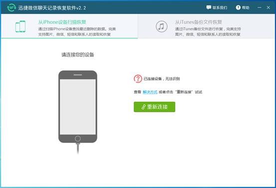 1、要恢復誤刪的手機微信我們需要將手機和電腦用USB進行連接,然後打開我們上面提到的迅捷微信聊天記錄恢復軟件進行操作。