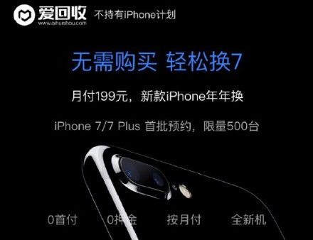 愛回收“不持有iPhone計劃” 支持北京、上海、廣州、深圳、天津、蘇州、杭州、南京8個城市。該計劃需用戶簽訂一個合約即可拿到iPhone7/7Plus的一年使用權,一年後歸還手機的同時,可簽訂下一款iPhone新機的使用合約。“不持有iPhone計劃”合約期為一年,分12期按月付費,iPhone7的用戶每月支付199元起,iPhone7 Plus 的月付費用為219元起,不需要交付押金,只需信用卡分期擔保即可。歸還舊機時,只要iPhone存在的問題在意外險之內,不影響正常使用,無進水、拆修等嚴重問題即可順利歸還,用戶可以選擇終止合約或續約新款。