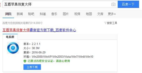 這裡將給大家講解蘋果手機照片誤刪怎麼恢復的最佳回復方案,這種恢復方法是適應廣大群眾的一種貧民化的數據恢復方法。第一我們可以坐在家中就實現數據恢復;第二我們不需要任何的數據恢復知識;第三操作非常簡單。我們使用大的僅僅是一款互盾蘋果恢復大師軟件。